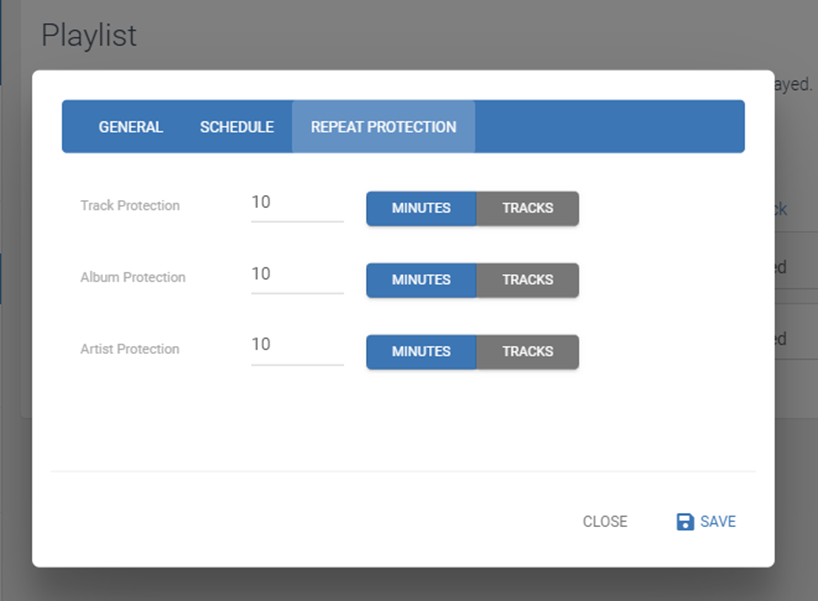 Repeat Protection ensures that the same track, or a track from the same album or artist does not play within the defined period, or within a certain number of track plays.